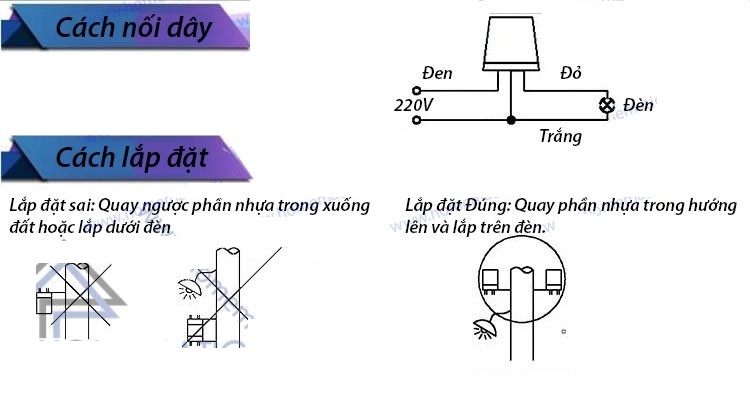 - Khi kiểm tra trong điều kiện trời sáng, cần lấy túi nilon đen che công tắc đi, đèn sẽ bật sáng, và bỏ nilon ra nếu trời đủ sáng đèn sẽ tắt.